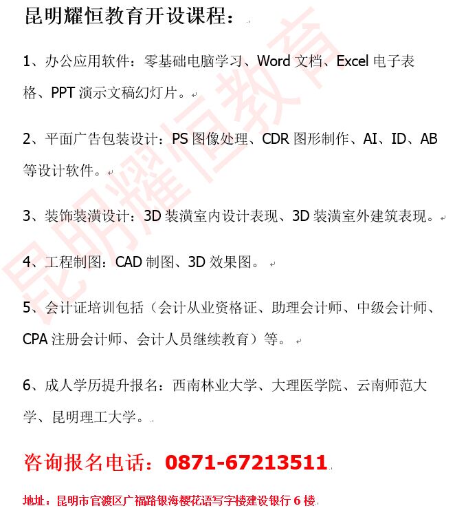 [日期:2015-08-12] 來源:昆明耀恒教育 作者:昆明耀恒教育 閱讀:3584次