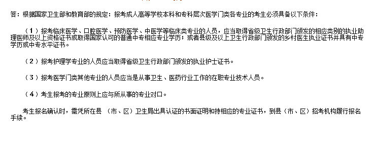 2015年成人高考報考西醫類高等本科專業醫學類專業需要什么條件?