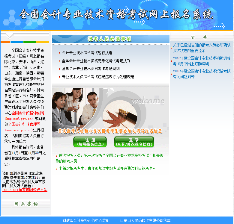 2016年會計初級職稱(助理會計師)考試報名網址: